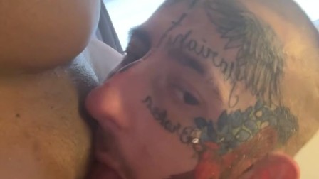 Up Close And Personal Pussy Licking Spitting and Slurping Nasty White Boy VS Ebony Step Mom