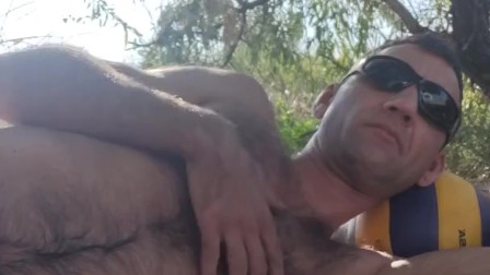 Relaxing in the shade on the beach.