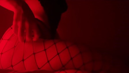 Girl in fishnet tights masturbates with fingers and brings herself to shaking orgasm