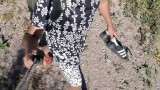 caminando en publico vestida de mujer con tacones altos y tanga caliente