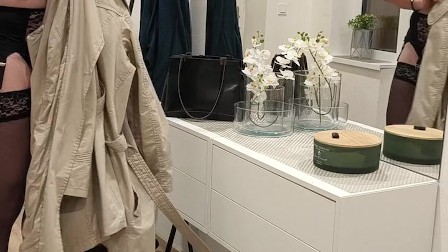 In the hall in black lingerie